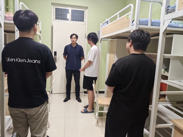 走访过程中,学院领导逐一查看各宿舍卫生环境与安全设施,细致检查门窗锁具是否完好,并贴心提醒新生注意用电安全,杜绝私拉电线、使用违规电器,确保大家拥有安全、舒适的居住环境。每至一室,党总支书记都与新生亲切交谈,仔细询问报到入学后的适应情况,耐心倾听同学们在生活、人际交往等方面的感受与需求。一句句暖心问候,迅速拉近了师生距离,也让新生们敞开心扉,主动分享入学体验。学院领导就同学们提出的各类问题一一作出细致解答,以通俗的语言和实例化解疑惑。