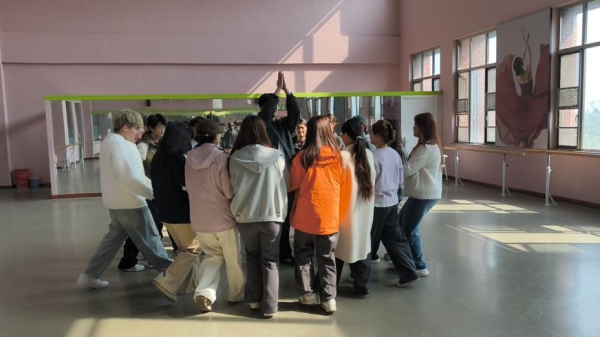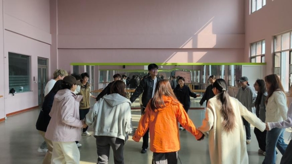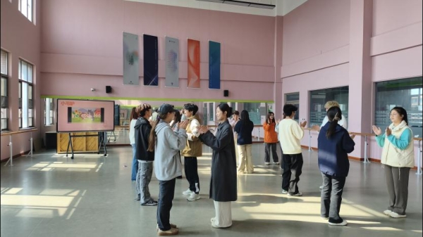 团体音乐游戏进一步营造出轻松活泼的氛围。学生围圈互动,在节奏任务中配合默契,掌声与欢笑不绝于耳。有学生表示:“击掌配合的瞬间,陌生感悄然消融,我深刻体会到集体的温暖与协作的力量。”同学们在愉悦的体验中释放压力,深化情谊。