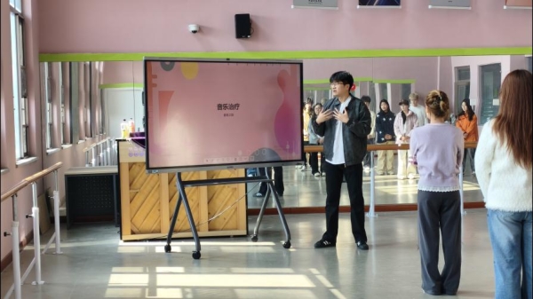 活动伊始,主讲人杨德青以“什么是音乐治疗”为切入点,结合理论与实例,系统阐释音乐治疗的科学内涵、作用机制与实际应用。他强调,音乐治疗并非简单的听觉放松,而是通过专业干预实现音乐节奏、旋律与个体身心节律的协同共振,从而达到情绪调适与认知提升的效果。讲解内容兼具学术性与普及性,有效深化了学生对音乐疗愈的理性认知。