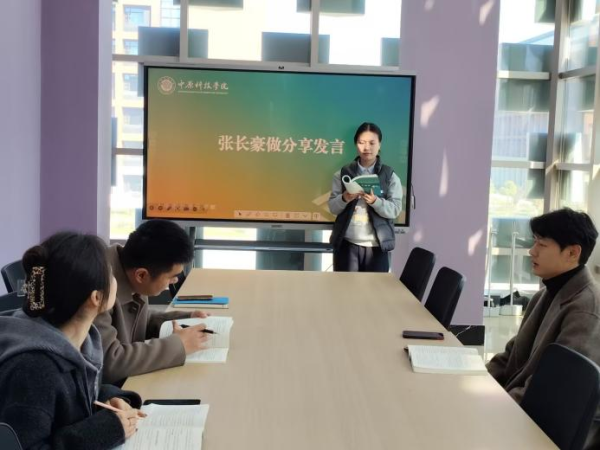 会议第一部分为领学环节。曹啸天书记带领全体与会人员,对相关章节进行了系统梳理和深入解读。他结合大三学段学生的思想动态与成长需求,着重分析了如何在新阶段持续强化学风建设,如何引导学生进行科学的职业生涯规划以应对未来的挑战,以及如何毫不松懈地抓好日常安全管理,为学生的成长成才保驾护航。会议第二部分为分享交流环节。团委书记张长豪与辅导员李博林老师先后发言,他们结合自身分管工作的实际情况,分享了各自的学习心得与实践思考。两位老师均表示,将积极借鉴和运用《指南》中提出的科学方法与优秀做法,将其融入到日常的学生思想政治教育、团学活动开展、就业指导服务与班级管理等具体工作中,努力将书本知识转化为推动工作创新、提升育人实效的强大动力。