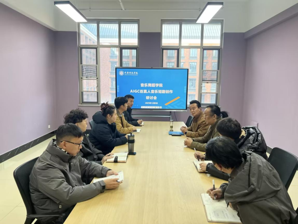 为积极探索艺术与科技融合的新路径,推动学科创新发展,12月9日下午3:30,音乐舞蹈学院在M335会议室召开AIGC仿真人音乐短剧创作专题研讨会,学院院长商立君、院长助理高龙及相关专业教师代表出席了会议。会议特邀河南半音影视制作有限公司创始人、董事长,高级录音工程师盛明兴先生出席并进行专题分享,会议由商立君院长主持。