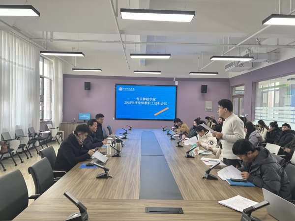 2025年12月18日下午,音乐舞蹈学院在原道楼M316会议室举行了2025年度全体教职工述职会议。院长商立君、院长助理高龙及学院全体教师出席了本次会议。会议旨在总结过去一年的工作成果,交流经验,规划未来,全体教师依次进行了个人述职,汇报本年度工作完成情况与下一年度工作计划。